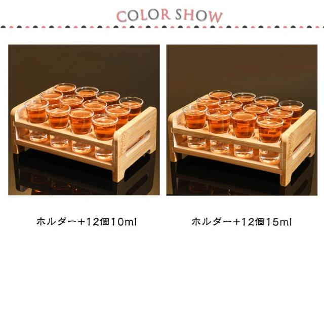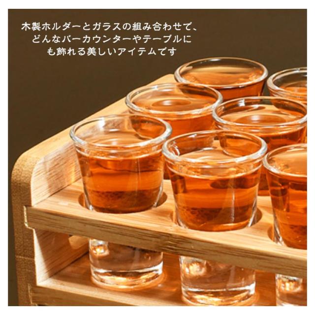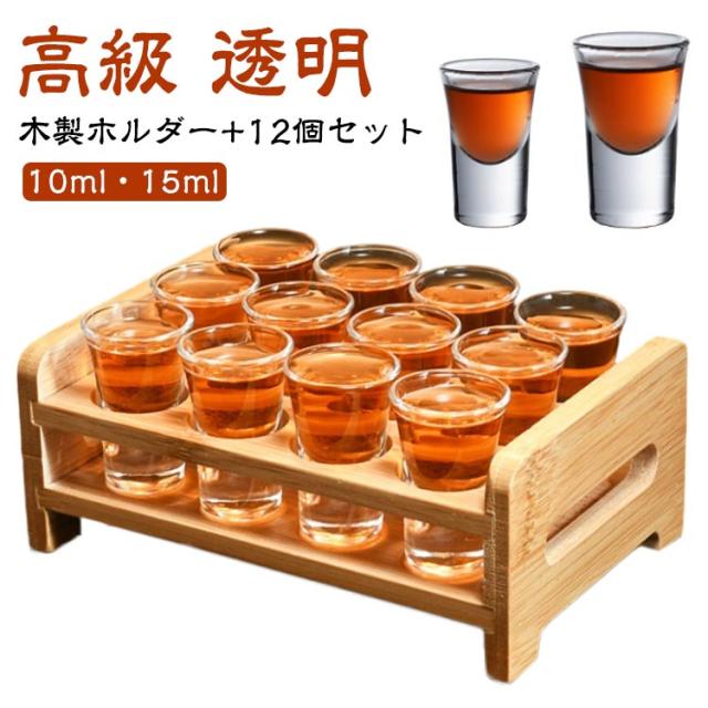 収納 ショットグラス 12個セット おしゃれ 木製ホルダー レストラン ドリンク プレゼント ディスプレイ ショットグラス サービング テイスティンググラス おしゃれ バー 硝子 グラス 10ml/15ml 焼酎グラス 高級 お酒 ギフト 贈り物