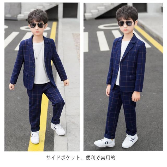 小学校 ブレザー スーツ チェック柄 ピアノ発表会 韓国 卒業式 中学生 小学生 制服 卒服 パンツスーツ 卒業式 フォーマルスーツ なんちゃって制服 子供 2点セット 上下セット 入学式 おしゃれ パンツスーツ 卒園式 結婚式 七五三 B系 大きいサイズ 170
