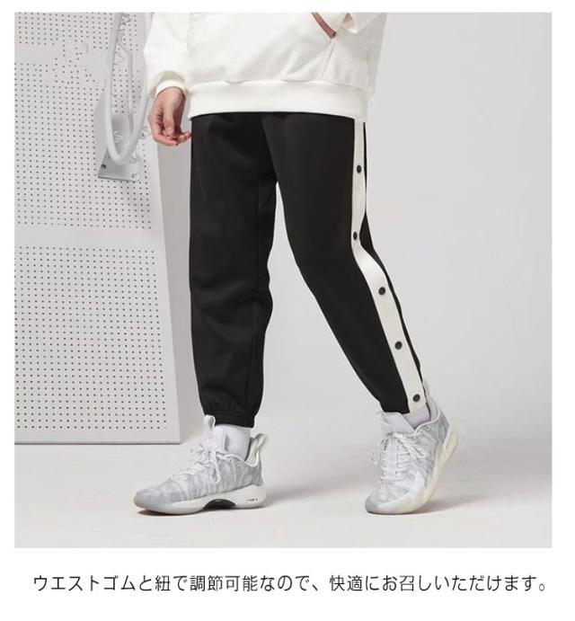 バスケットボールパンツ バスケパンツ バスケットボールパンツ 裾ボタン ジャージパンツ キッズ 練習用パンツ サイドボタン サイドライン バスケットボール スナップボタン 長ズボン ロングパンツ 男の子 女の子 ジャージ