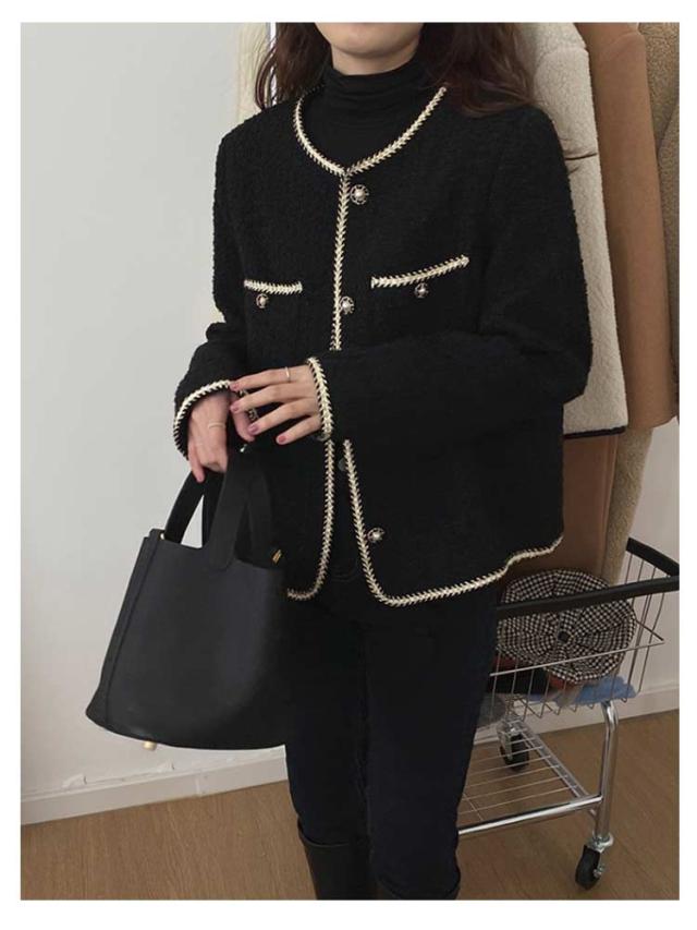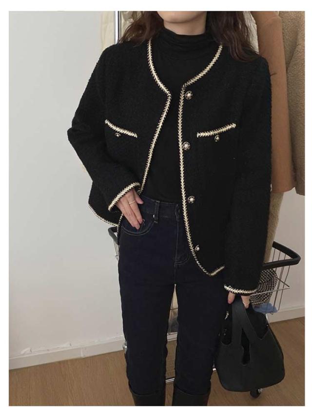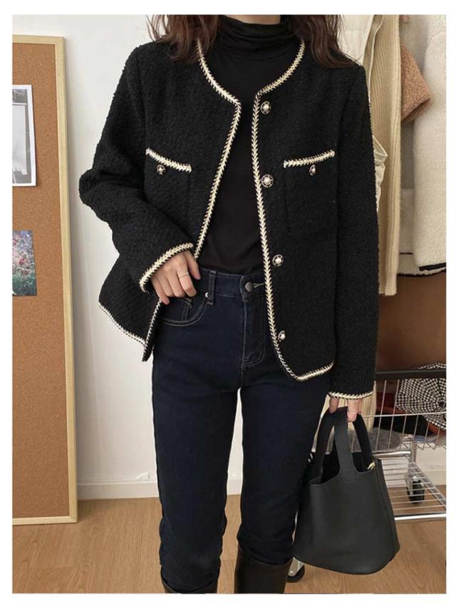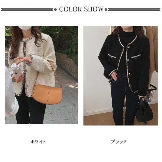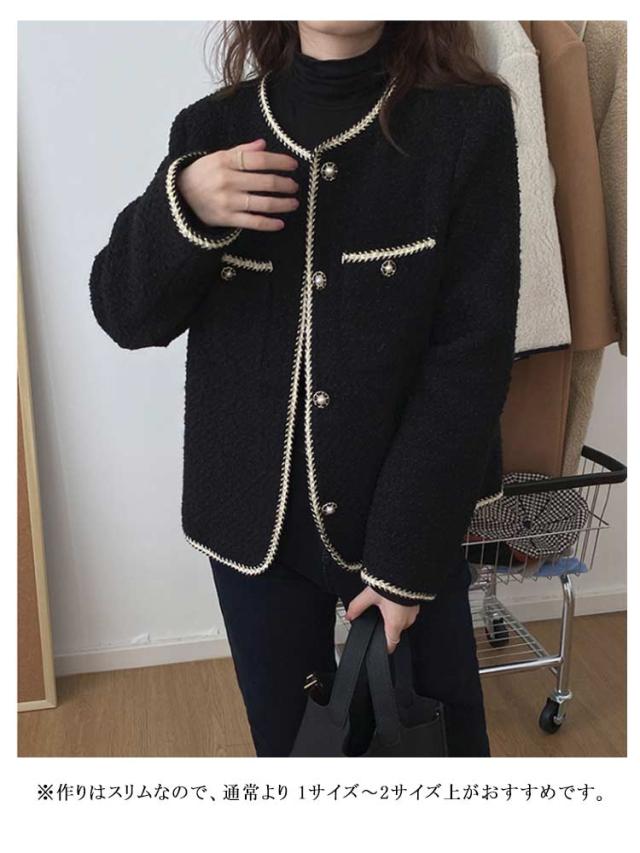 春秋 レディース ツィードジャケット 母 ママ スーツジャケット ママ 韓国 セレモニー アウター 卒業式 カジュアル ジャケット 卒園式 入学式 お呼ばれ 普段使い 通勤 ノーカラージャケット S M L