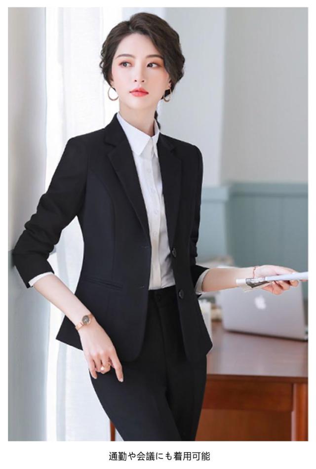 | 黒のジャケット+パンツスーツ 滑らかな裏地、通気性があり肌に優しい シワになりにくく、アイロン不要、肌触りも快適です。 洗える、洗濯機で洗えます 通勤や会議にも着用可能 | |