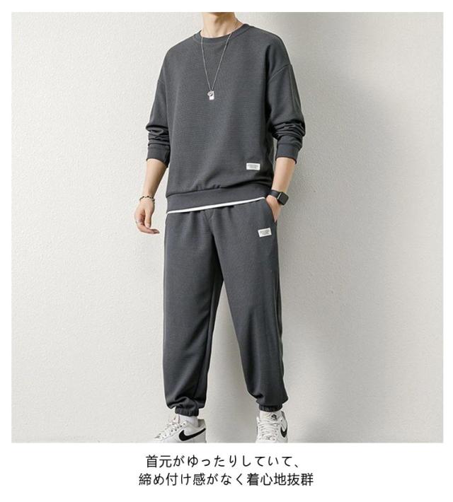 ジャージ ロングパンツ 夏 メンズ 大きいサイズ 長袖 ジャージ 上下 長袖ジャージ 2点 スウェット トレーナー 上下セット セットアップ 軽量 Tシャツ パジャマ 長袖セットアップ スウェットパンツ ルームウェア 部屋着 カジュアル ゆったり ワップル 父の日