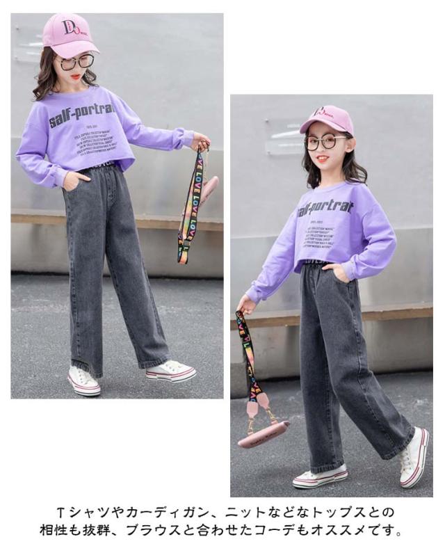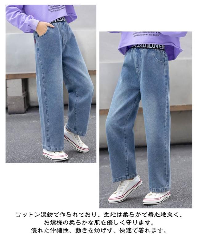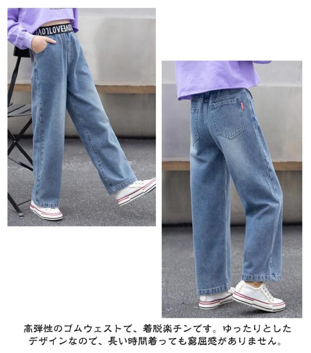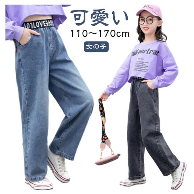 子供 170cm 女の子 ズボン 春夏 デニムパンツ キッズ ワイドパンツ パンツ ジーパン ガールズ ロングパンツ 子供服 ジーンズ 通学 普段着 ブルー 110 120 130 子供 150 160 140 おしゃれ 幼稚園 小学生 韓国 子ども服 お出かけ カジュアル