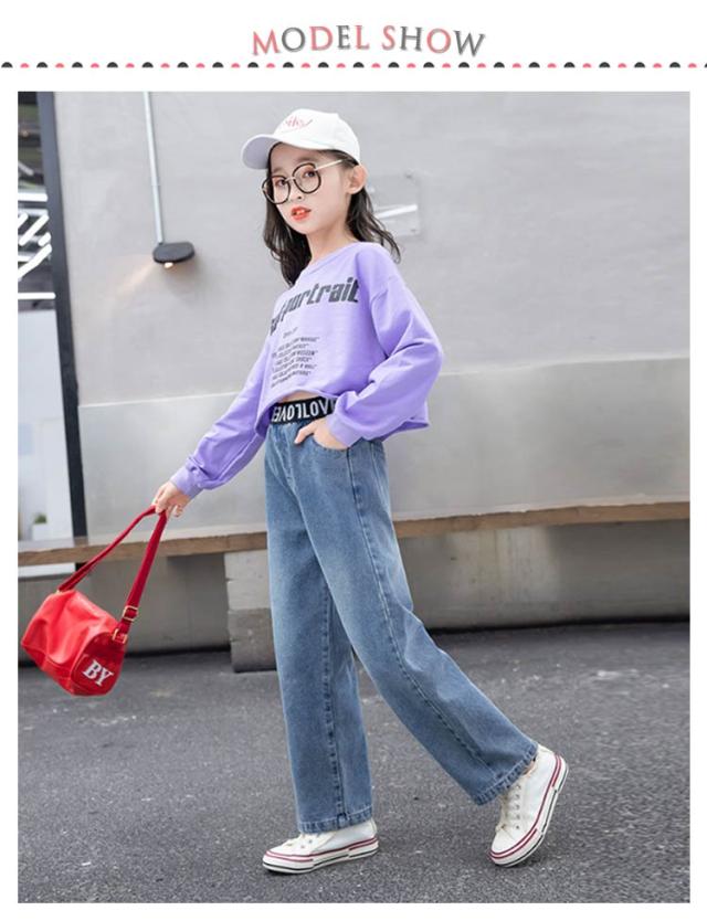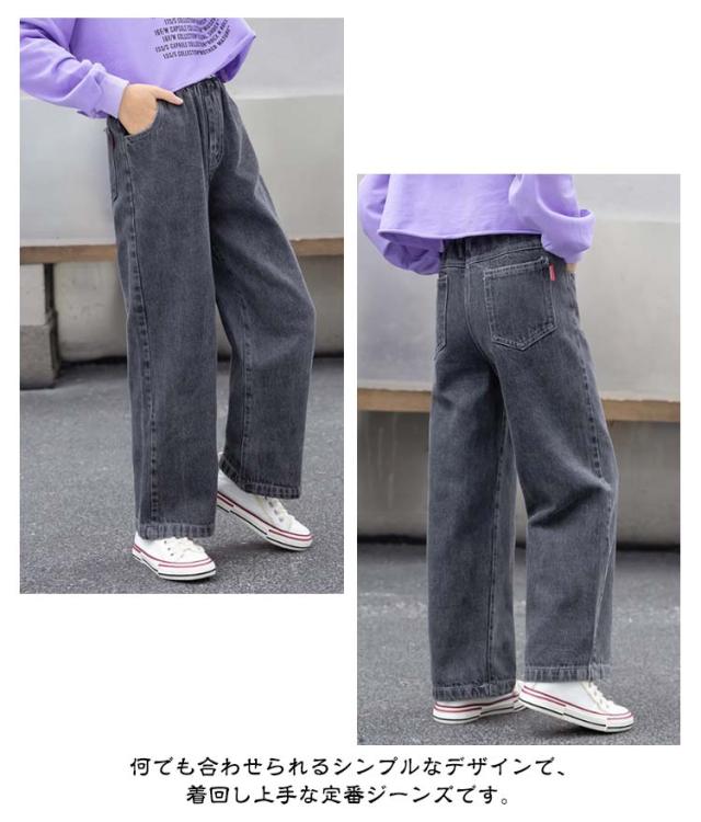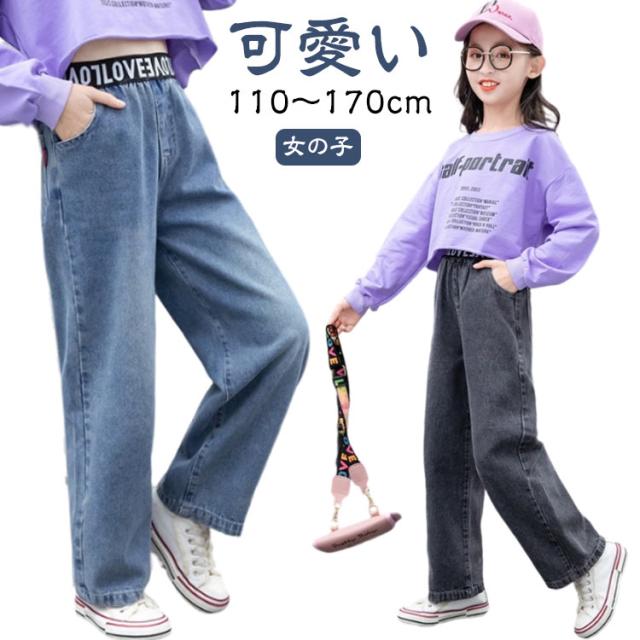 パンツ 女の子 子供 ブルー ズボン ジーンズ ジーパン ワイドパンツ ガールズ デニムパンツ 160 ロングパンツ 子供服 キッズ 通学 普段着 子供 110 120 130 140 150 春夏 170cm おしゃれ 幼稚園 小学生 韓国 子ども服 お出かけ カジュアル