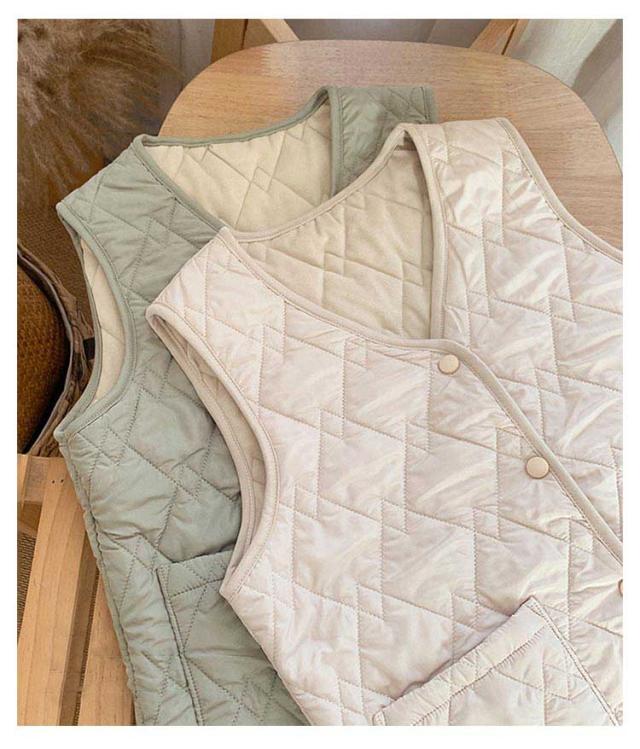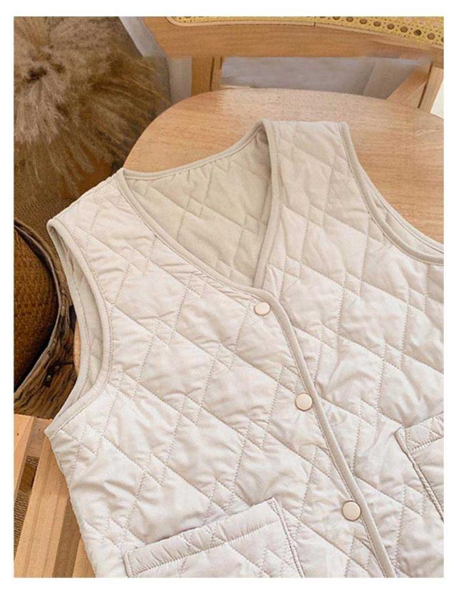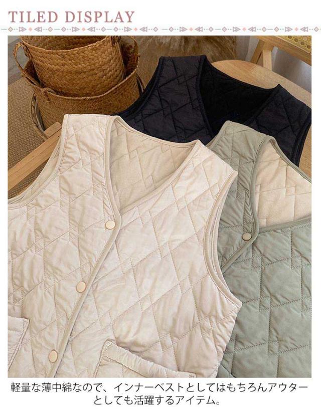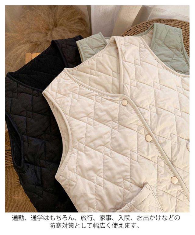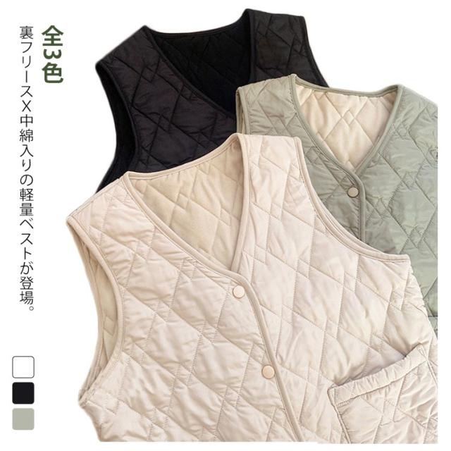 秋 レディース ルームウェア 薄手 ライトダウン インナーダウン 女の子 防寒着 ダウンベスト 冬 ベスト 裏フリース ノーカラー Vネック 重ね着 ダウンベスト 軽量 全3色 中綿ベスト ブラック ベージュ ホワイト 防寒 寒さ対策 中学生 高校生 ジュニア 通勤