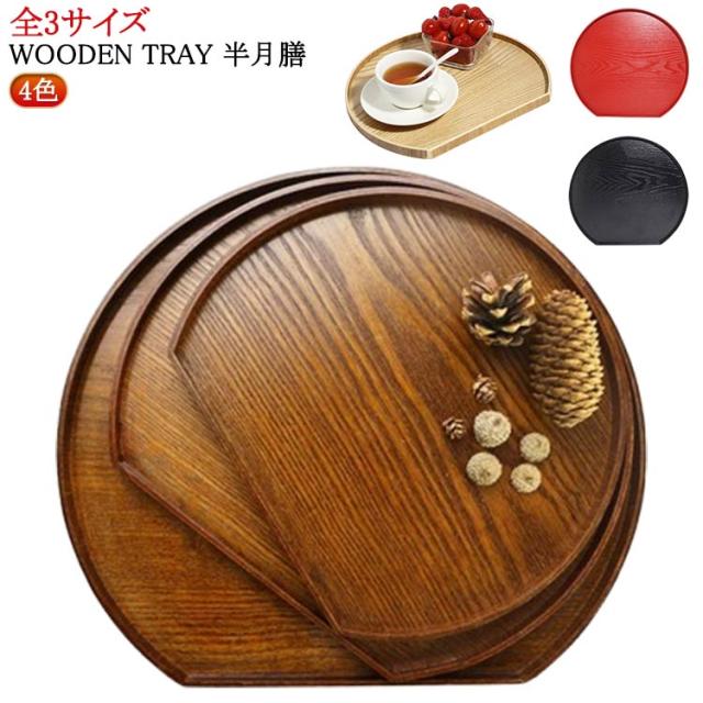 お盆 トレー 半月盆 盆 36cm ウッドトレイ 木目調 木製 洋風 和室 おしゃれ カフェ風 トレイ ランチョンマット おぼん 半月膳 白木 配膳 北欧風 お節 お正月 来客用 膳 半月盆 キッチントレー おもてなし ナチュラル