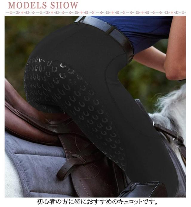 | 乗馬キュロット S〜2XL お尻から足元にかけて施されたグリップ力の強いシリコン素材が、騎乗時の安定感を大幅にアップさせてくれます 初心者の方に特におすすめのキュロットです 足首部は脱ぎ履きしやすいスパッツ素材となっています | |