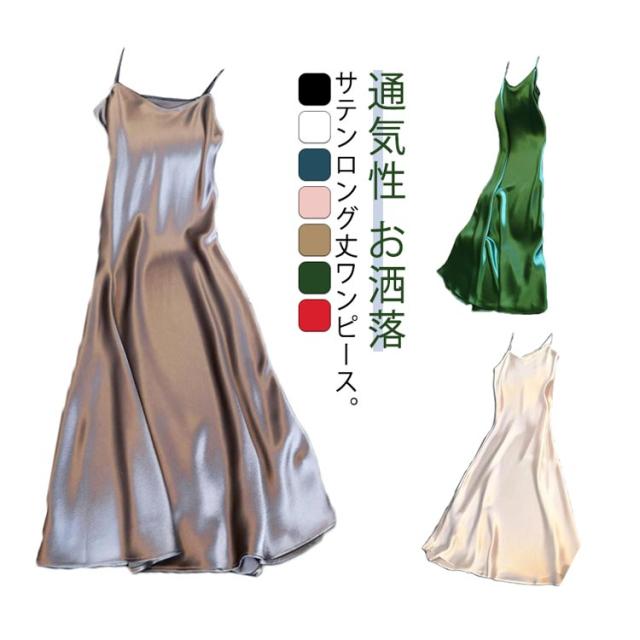 マキシワンピース サテンワンピース キャミソールワンピース 全7色×4サイズ サテンキャミソールワンピー キャミワンピ ロングワンピース Aラインワンピース キャミワンピース ロング丈 サテンキャミソール セクシー