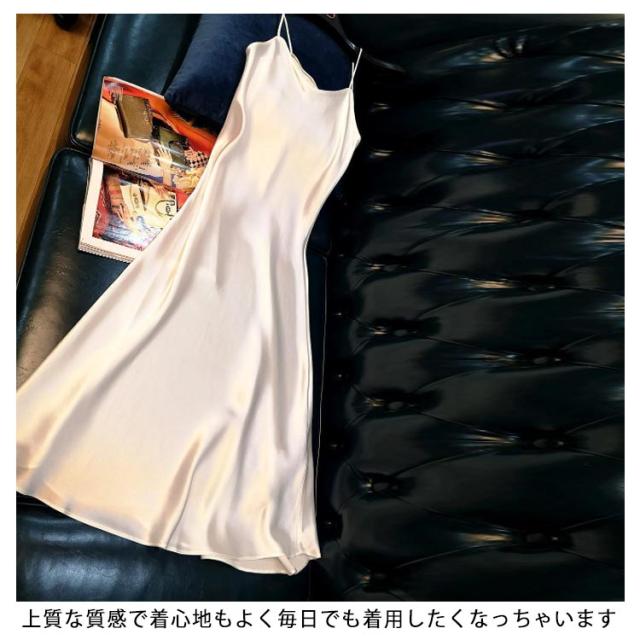 | サテンロング丈ワンピース。 Vネックに華奢な肩紐のキャミソールワンピース。 光沢感のある上品なサテン素材でひらひらとエレガント。 体のラインをきれいに見せてくれるサテン風ワンピース 上質な質感で着心地もよく毎日でも着用したくなっちゃいます シルクタッチ素材で、とても柔らかくて、 肌触り良い 春にはレースインナーとコーデして、様々なコーディネートに使えるアイテムです。 | |
