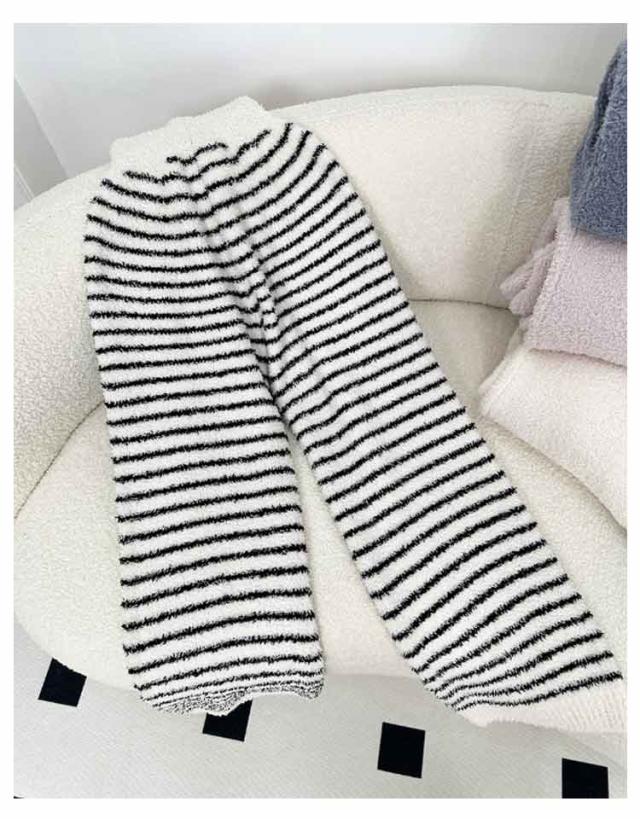 レディース パンツ パジャマ ロングパンツ 秋冬 腹巻付き ルームパンツ もこもこ 腹巻付きなのでお腹の冷え対策に!ルームウェア 腹巻付きなのでお腹の冷え対策に!ルームウェア 腹巻き あったか ふわふわ 暖か はらまき ボーダー柄 ふわふわ リラックスウェア