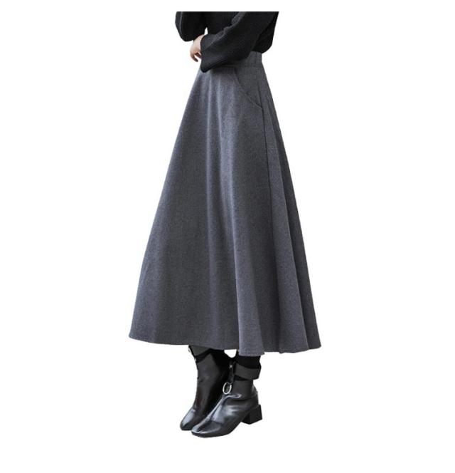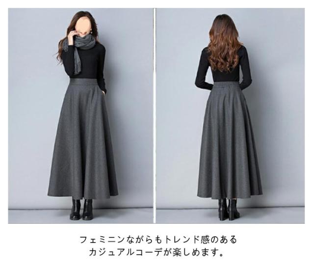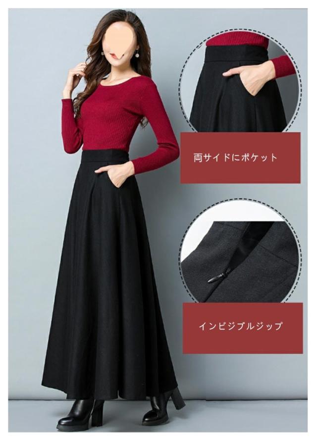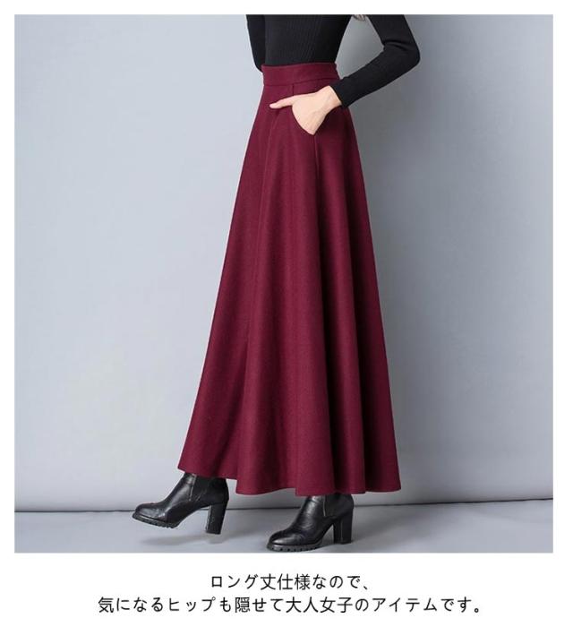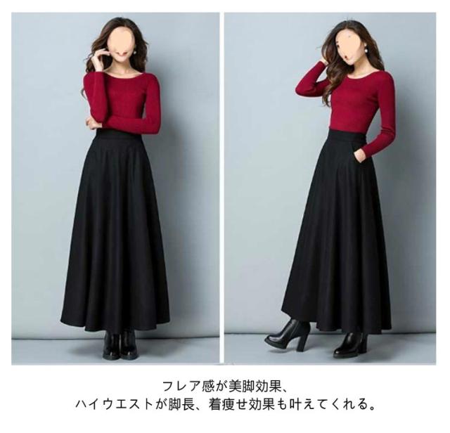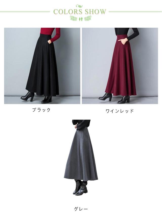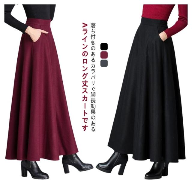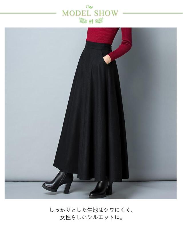 ウエスト ウール調 ハイウエスト 秋冬 体型カバー 大きいサイズ フレアスカート aライン 冬 スカート ロング 黒 マキシスカート 伸ばす スカート ウールタッチ レディース ロングスカート Aライン フェイクウール