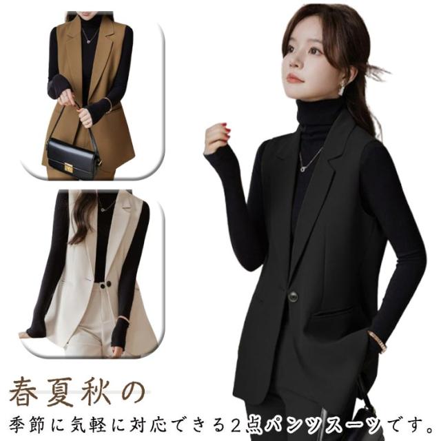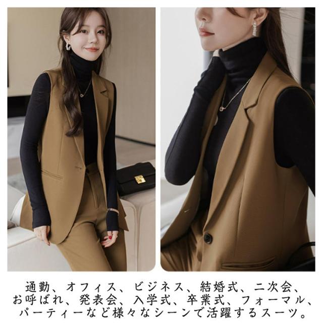 セレモニースーツ OL パンツ 上下 ベスト セットアップ カジュアル ビジネススーツ レディース パンツスーツ フォーマルスーツ きれいめ スーツ フォーマル エレガント 発表会 おしゃれ オフィス 通勤 結婚式 ジレ 2点セット ママ 入学式 卒業式 面接 春 秋 冬