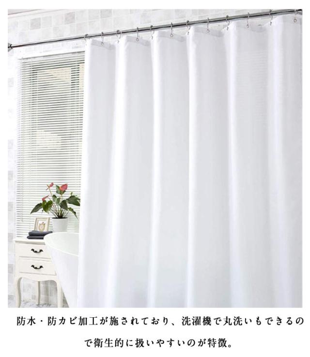 | シャワーカーテン 防水・防カビ加工 C字型のフックつきで取り付け簡単 防水・防カビ加工が施されており、洗濯機で丸洗いもできるので衛生的に扱いやすいのが特徴。 バスルームはもちろん洗面所・キッチン・窓・部屋の目隠しや仕切りにもおすすめです。 | |
