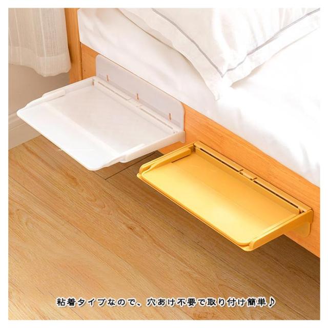 棚板 ウォールシェルフ サイドテーブル 伸縮トレイ 折り畳み ナイトテーブル 自宅用 寝室 ベッドテーブル スマホ置き 壁面収納 ベッド用 トレー 省スペース 収納 スリム 玄関 多機能 ウォールシェルフ ウォールラック 寮用 ブラック ホワイト イエロー グリーン