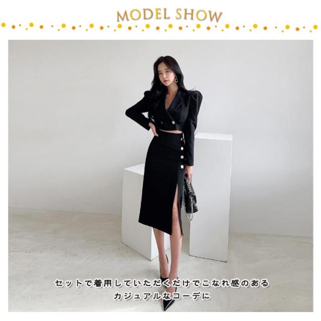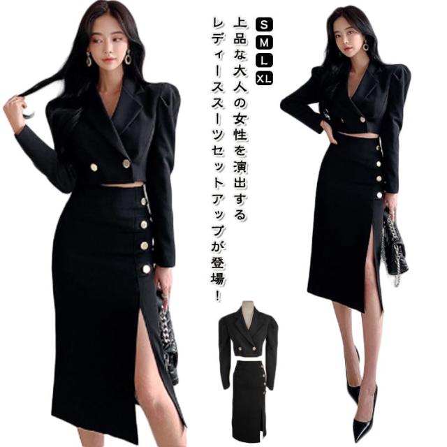 ショート丈 レディース セットアップ タイトスカート スーツ フォーマル セレモニースーツ スカートスーツ ショートジャケット スーツジャケット ショート丈 パーティードレス ハイウエスト サイドスリット