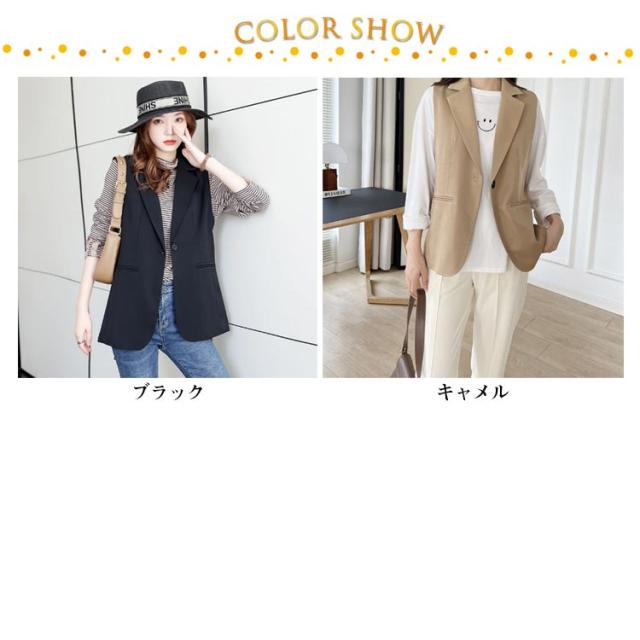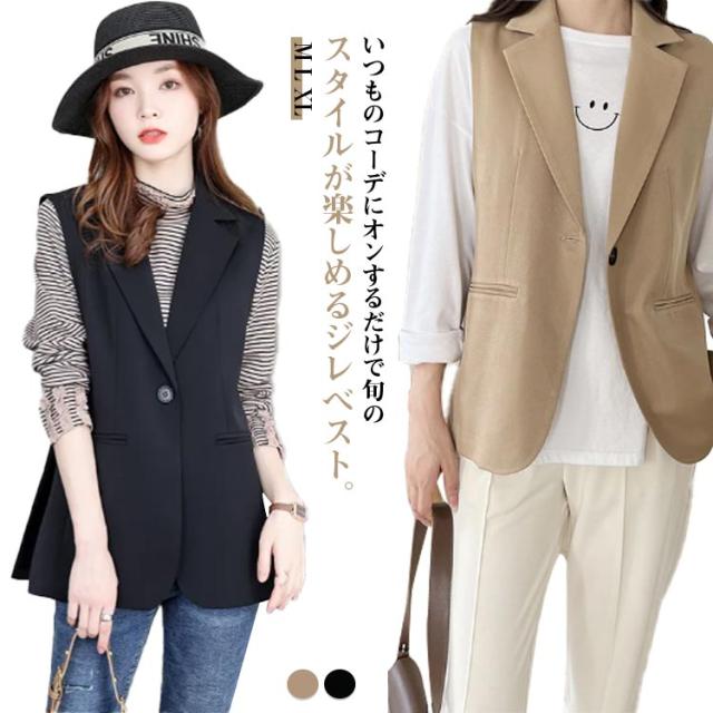 春 ジレ 夏 レディース ジレ ベスト 羽織り ロング スーツノースリーブ テーラード テーラードベスト レディース シングル 羽織 トップス ベスト フォーマル ノーカラー シンプル ジレ 前開き 無地 きれいめ カジュアル レイヤード フェミニン 20代 30代