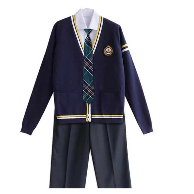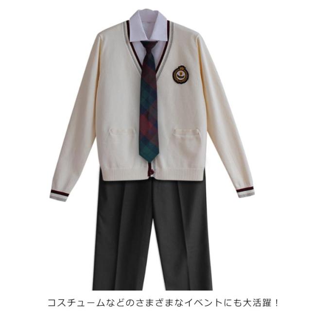 学生服 学生制服 コスプレ 白シャツ 入学式 ニットカーディガン バッジ付き 上下セット 卒業式 フォーマル 長ズボン ネクタイ 制服 男の子 5点セット ジュニア 発表会 学生制服 文化祭 コスチューム