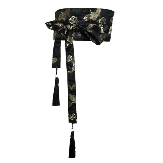 鶴 帯ベルト 着物 和風 帯 ベルト帯 太ベルト レディース 和風ベルト サッシュベルト おしゃれ 和風 和柄 コルセット 送料無料 衣装 帯風ウエストベルト 大人 ウエストマーク 着物風 フリンジ タッセル サッシュベルト帯 浴衣帯