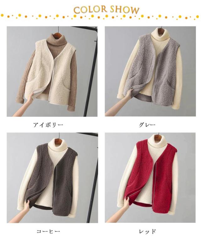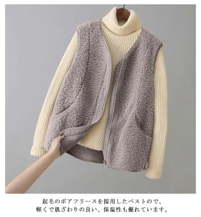 アウター ボア フリースベスト 春 ジレ ボアベスト 秋 重ね着 ベスト ボアジャケット レディース ボアベスト 冬 ノースリーブ 前開き ジャケット 大きいサイズ 無地 防寒 暖かい 羽織り ふわふわ もこもこ ジップアップ
