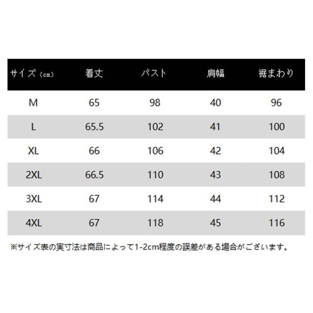| ●サイズ詳細等の測り方はスタッフ間で統一、徹底はしておりますが、実寸は商品によって若干の誤差(1cm〜3cm )がある場合がございますので、予めご了承ください。 ●商品の色は、撮影時の光や、お客様のモニターの色具合などにより、実際の商品と異なる場合がございます。あらかじめ、ご了承ください。 ●製品によっては、生地の特性上、洗濯時に縮む場合がございますので洗濯時はご注意下さいませ。 ▼色味の強い製品によっては他の衣類などに色移りする場合もございますので、速やかに(脱水、乾燥等)するようにお願いいたします。 ▼生地によっては摩擦や汗、雨などで濡れた時は、他の製品に移染する恐れがございますので、着用の際はご注意下さい。 ▼生地の特性上、やや匂いが強く感じられるものもございます。数日のご使用や陰干しなどで気になる匂いはほとんど感じられなくなります。 | |