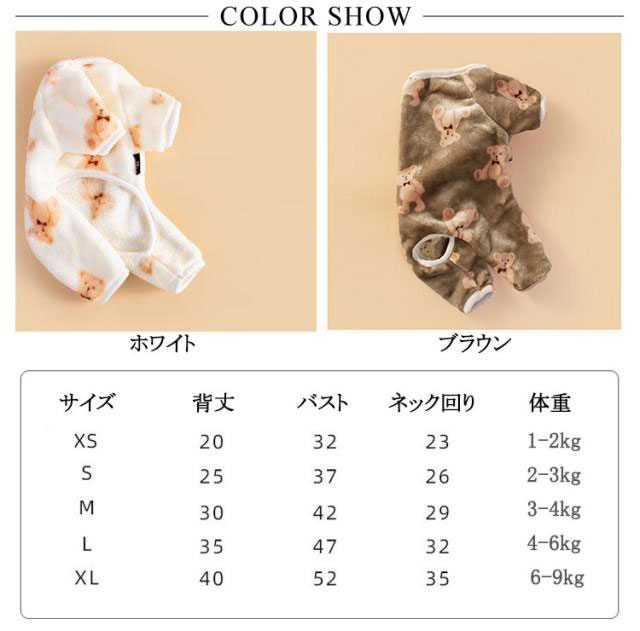 | 防寒性とデザイン性が高いおしゃれなペット用ウェア。 長袖4脚設計!寒さ対策に最適!犬の部屋着/ルームウェア/パジャマ/抜け毛や冷房対策にも! 寒い季節にお部屋着、ワンちゃん友達に会う時や旅行、お散歩などにおすすめ一着です。 | |