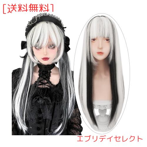 Hawkko ウィッグ ロング ストレート 姫カット フルウィッグ インナーカラー 姫髪 かつら レディーズ 女装 ウィッグ カツラ グラデーショ