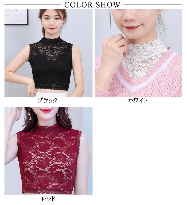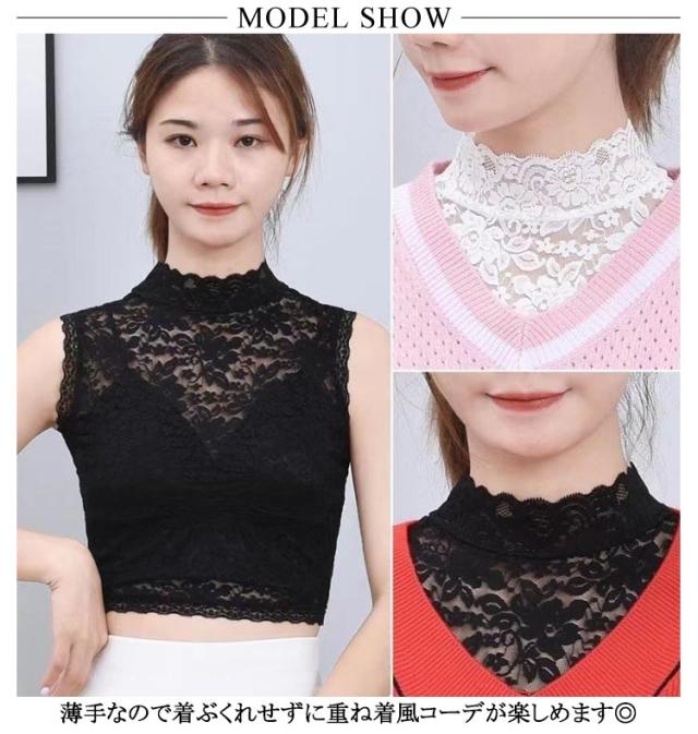 レイヤード つけ襟 レース フェイクカラー タートルネック レース 立ち襟 透け感 首元カバー ハイネック 総レース きれいめ 首元 ノースリーブ 付け襟 シースルー つけ襟 女性用 可愛い おしゃれ 春 送料無料 重ね着 夏 秋 冬 大きいサイズ