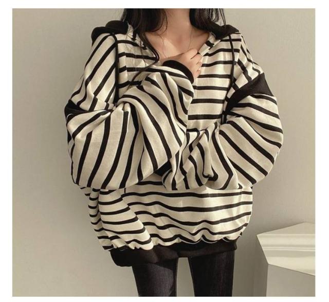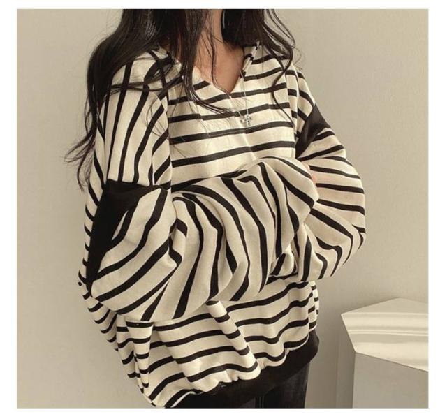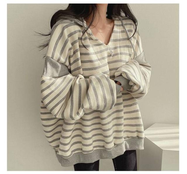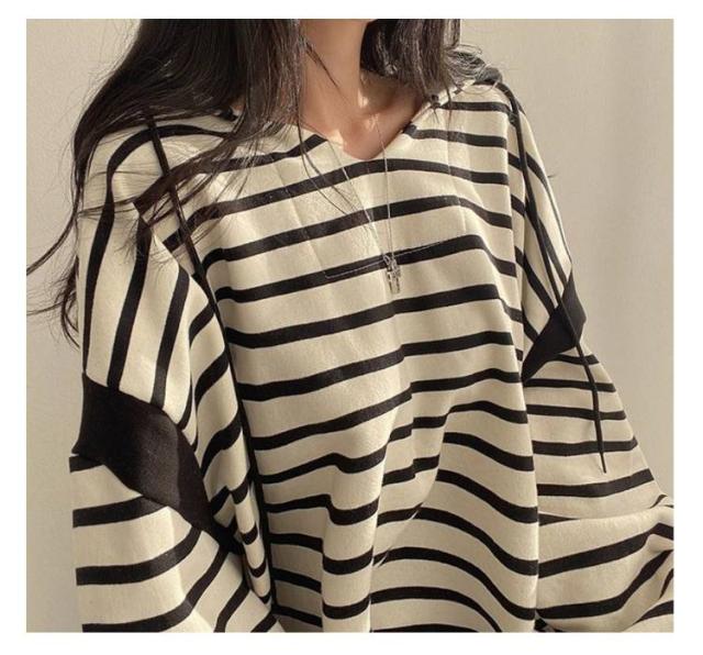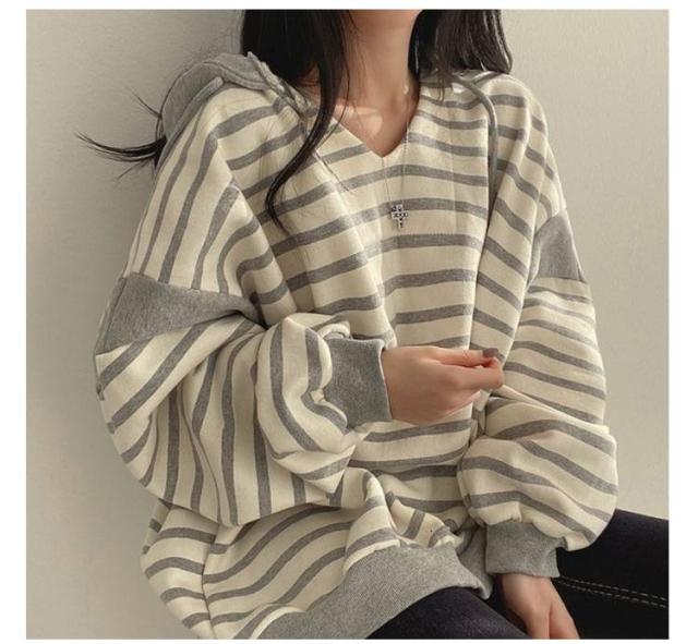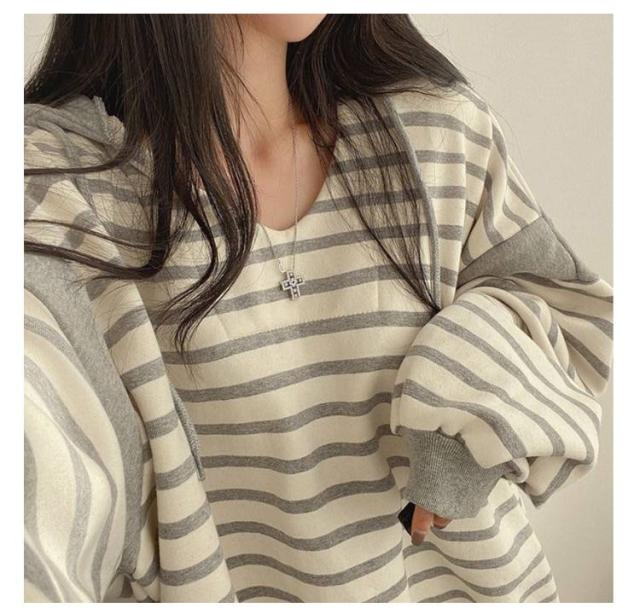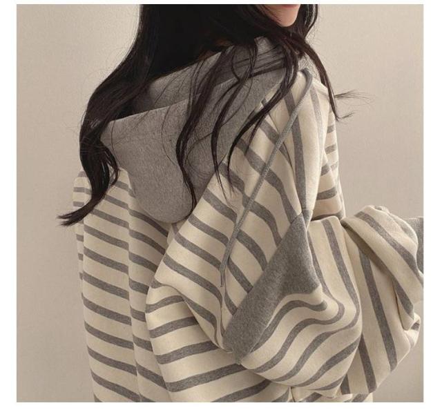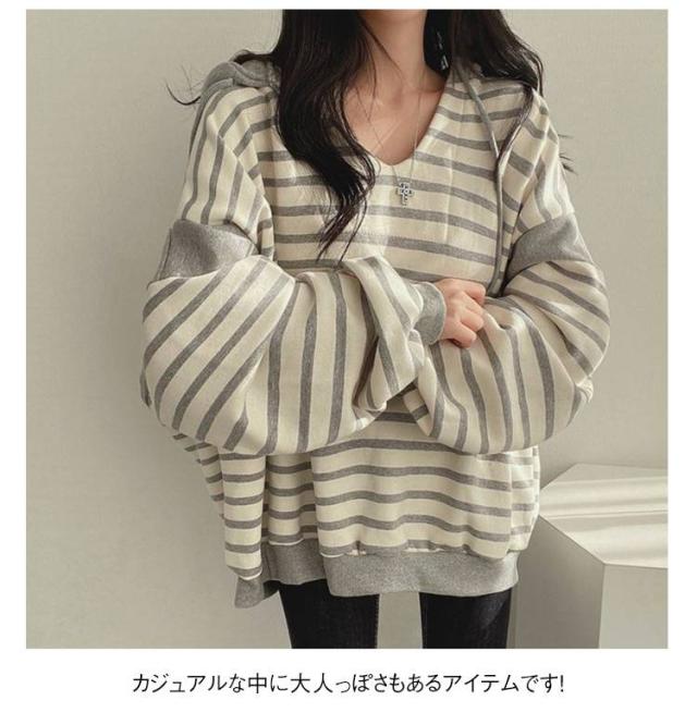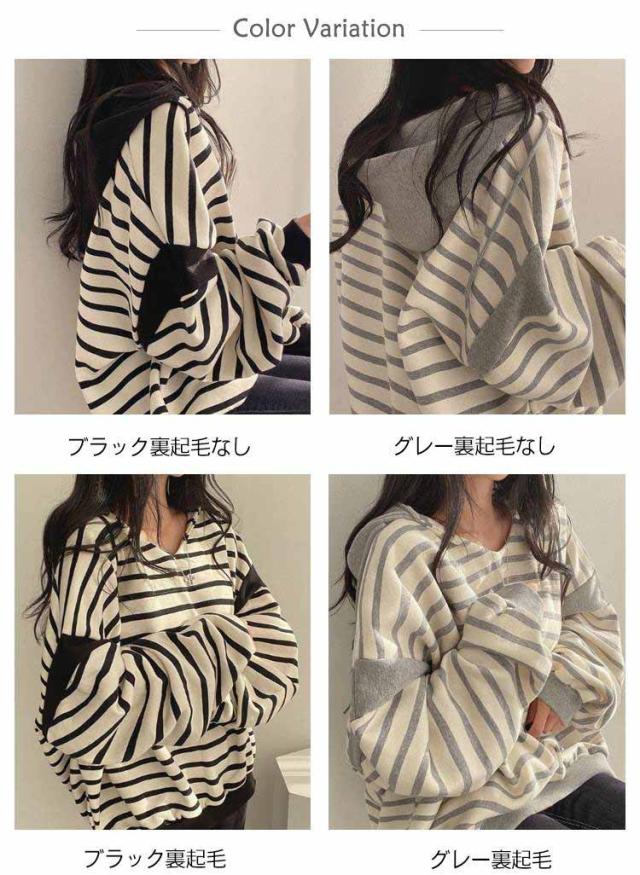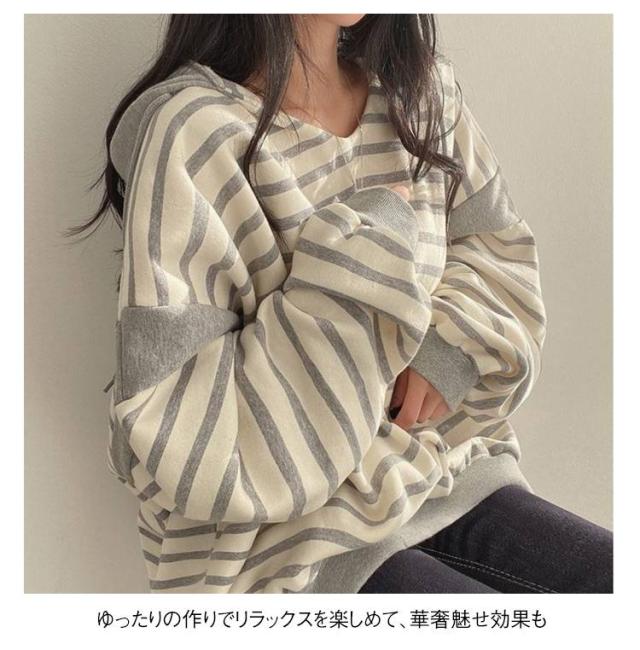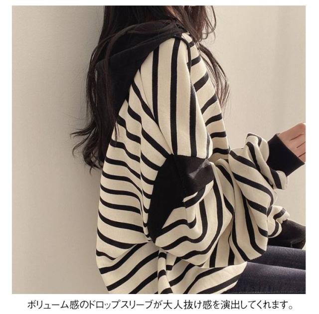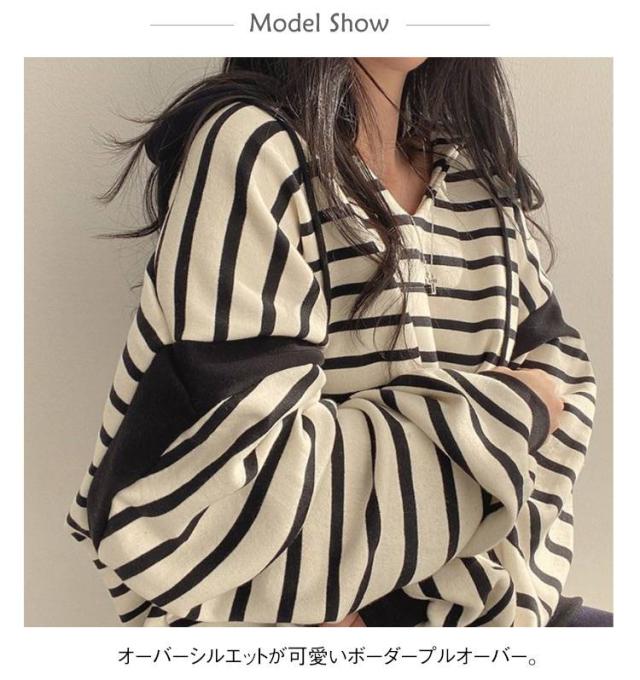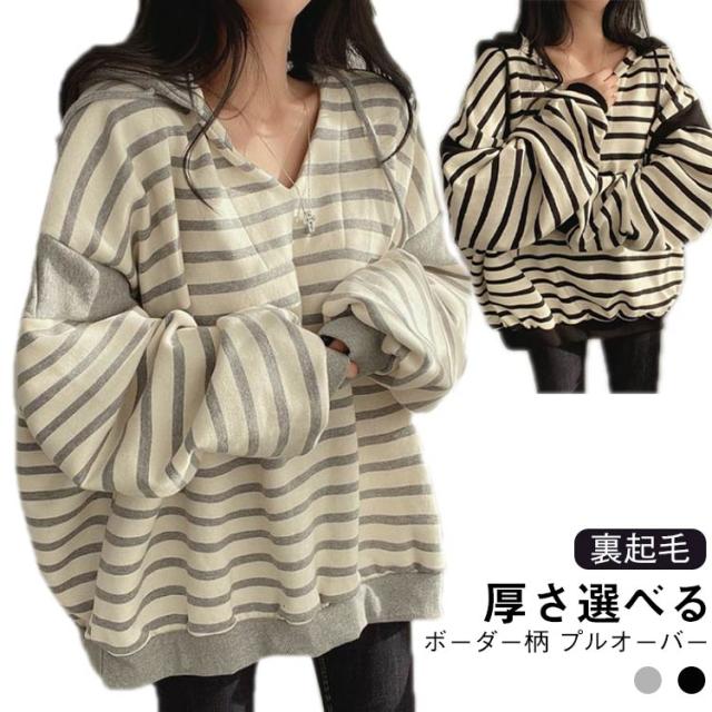 レディースパーカー レディースパーカー ボーダー柄 トップス レディース パーカー トレーナー プルオーバー フード付き 裏起毛 ゆったり レイヤード カジュアル