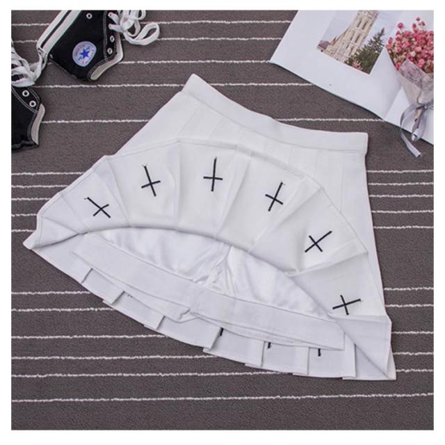 スカート 十字架 ミニスカート ストレッチ プリーツスカート ハイウェスト ショート丈 刺繍 地雷系 インナーパンツ付き モノトーン 個性的 地雷系 小悪魔 ギャル レディース 原宿系 サブカル系