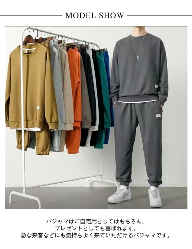 | シンプルな無地のスウェットトレーナーとスウェットパンツのセットアップ。M-5XL! パジャマはご自宅用としてはもちろん、プレゼントとしても喜ばれます。急な来客などにも気持ちよく来ていただけるパジャマです。 薄手のTシャツ生地で、柔らかい風合いが爽やかで心地よいパジャマです。 お家でゆったり過ごす時間も大切!優しい着心地ののルームウェアでリラックスタイムを楽しんでみてはいかがでしょうか☆ | |