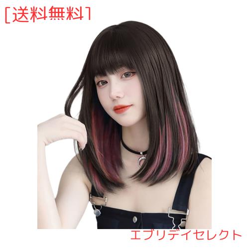 AISIQUEENSウィッグ セミロング ミディアム 黒 インナーカラー ピンク ストレート フルウィッグ かつら 女性 女装用 レディースウィッグ