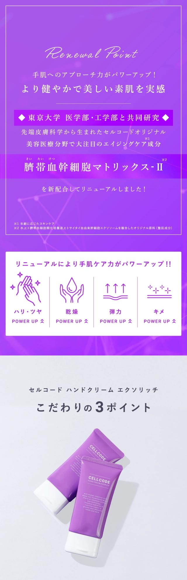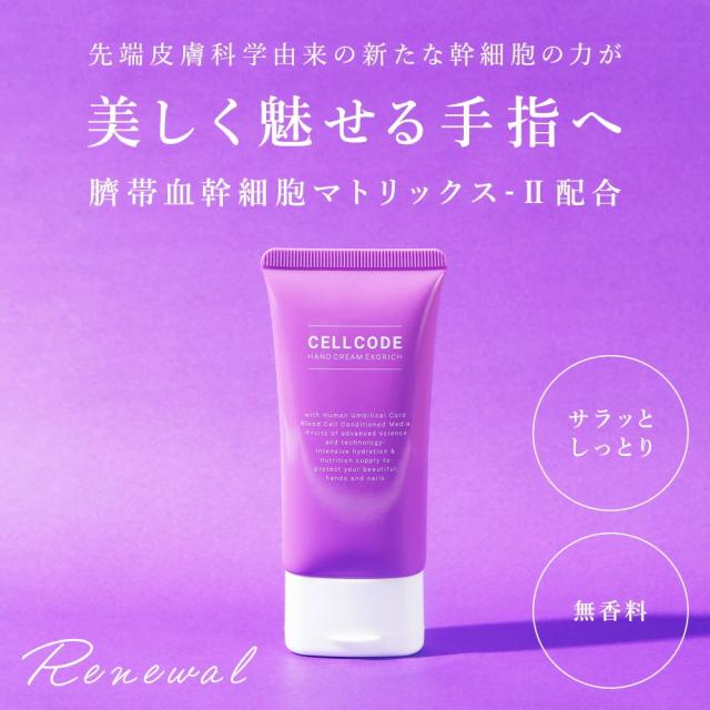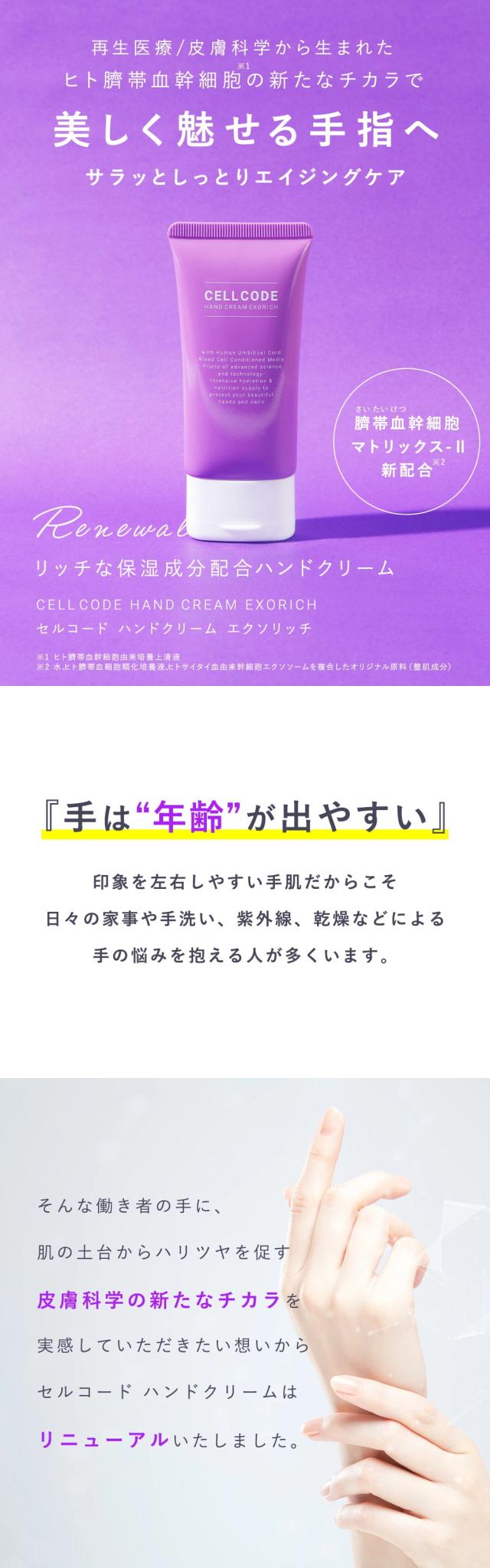ヒト幹細胞エクソソームの力で美しい手指へ!保湿 手荒れ ささくれ 年齢肌 セルコード ハンドクリーム エクソリッチ 50g 無香料 プロ愛用 日本製