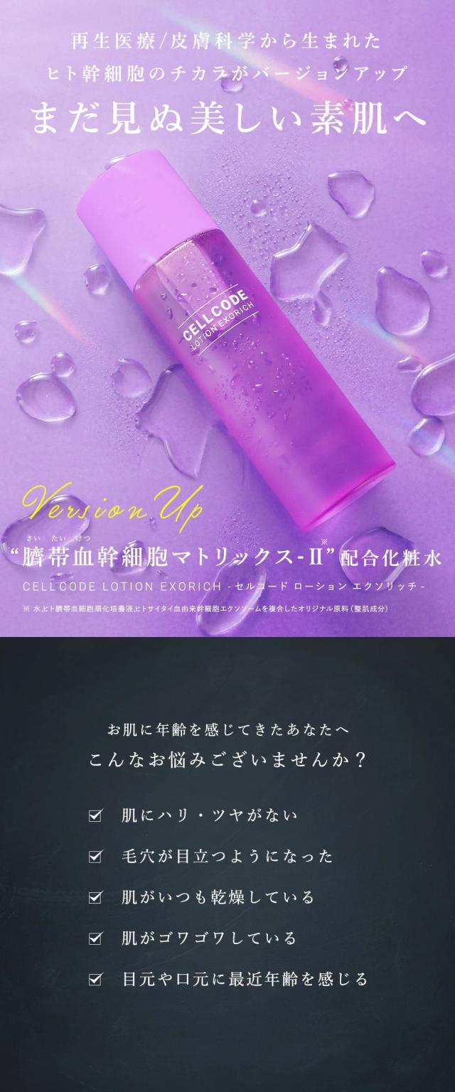化粧水 幹細胞 エクソソーム 高配合 エイジングケア 保湿 ハリ セルコード ローション エクソリッチ 120mL 幹細胞培養液 乾燥肌 敏感肌 日本製 30代 40代 50代