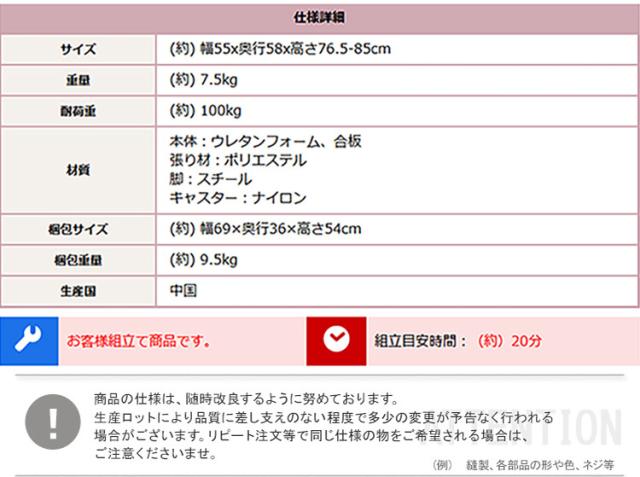 幅55×奥行58×高さ76.5〜85cm