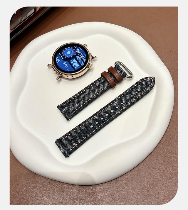 HUAWEI Watch 交換バンド ファーウェイウォッチバンド 18mm 20mm 22mm 交換 腕時計ベルトファーウェイ時計バンド スマートウォッチ通用 交換バンド ベルト 交換ベルト 18mm/20mm/22mm対応 可愛い デニム風 デニム ジーンズ 交換ベルト PUレザー おしゃれ
