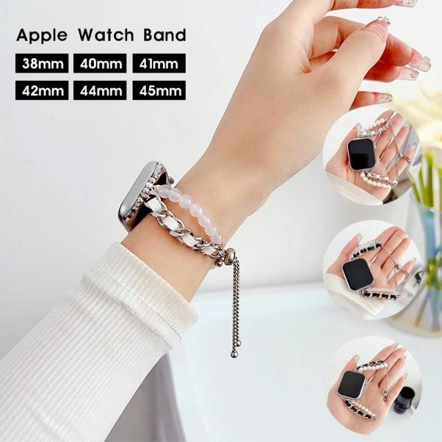 Apple Watch バンド シンプル ブレスレット アップルウォッチ バンド 38mm 40mm / 41mm / 42mm / 44mm / 45mm 時計 ベルト 交換バンド 腕時計ベルト 腕時計交換バンド かわいい 交換ベルト Apple Watch series 6 5 4 3 2 1 SE アクセサリー おしゃれ パール チェーン ブレスレット 人気バンド
