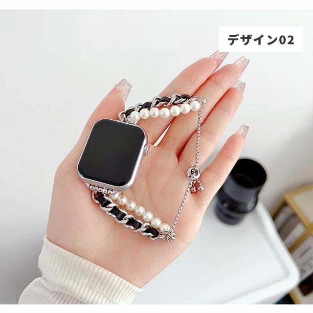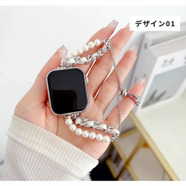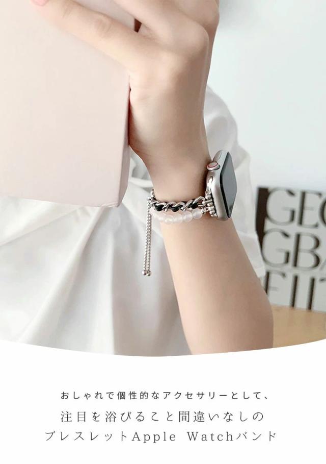 Apple Watch バンド シンプル ブレスレット アップルウォッチ バンド 38mm 40mm / 41mm / 42mm / 44mm / 45mm 時計 ベルト 交換バンド 腕時計ベルト かわいい 交換ベルト Apple Watch series 6 5 4 3 2 1 SE アクセサリー おしゃれ パール チェーン ブレスレット