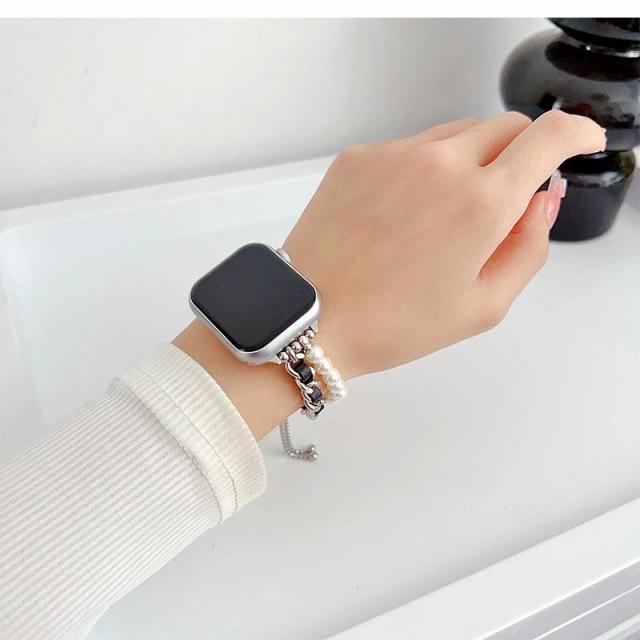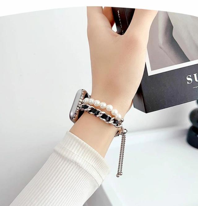 Apple Watch バンド シンプル ブレスレット アップルウォッチ バンド 38mm 40mm / 41mm / 42mm / 44mm / 45mm 時計 ベルト 交換バンド 腕時計ベルト 腕時計交換バンド かわいい 交換ベルト Apple Watch series 6 5 4 3 2 1 SE アクセサリー おしゃれ パール チェーン ブレスレット