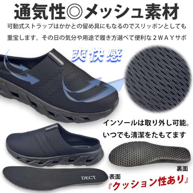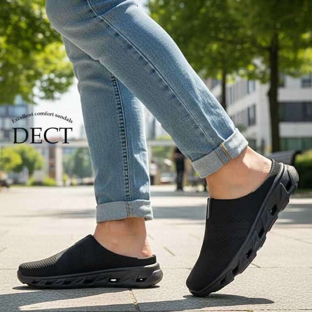 メンズサンダル サンダル サボサンダル スリッポン メンズ メッシュ 厚底 通気性 屈曲性 かかとなし DECT ブランド