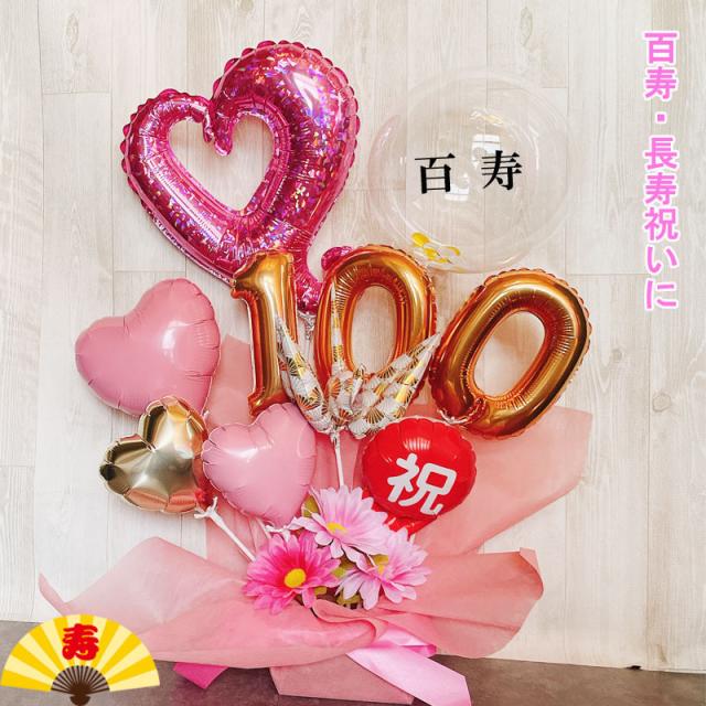 バルーンギフト 100歳 誕生日 百寿 お祝い バルーンアレンジ 長寿祝い バルーン おしゃれ 豪華 電報 百一賀 長寿 卓上 敬老の日 数字 プレゼント 男性 女性 ピンク バルーンフラワー アクアバルーン