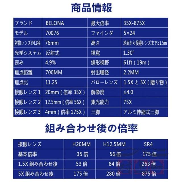 最新の最大876倍スマホやIphone対応のこのクラス最新の天体反射望遠鏡、地上望遠鏡が新登場 小型化軽量化高性能化しIphoneや6インチスマホは取り付けてビデオや写真撮影も可能当店のダブレット、4Kビデオカメラ、暗視スコープビデオカメラ、カメラ付きスマートウォッチも工夫次第で取付でき倍率は88倍から876倍+各最大倍率が可能天体だけでなく地上望遠鏡としても使えるので緊急時やアウトドア、旅行、キャンプにも。