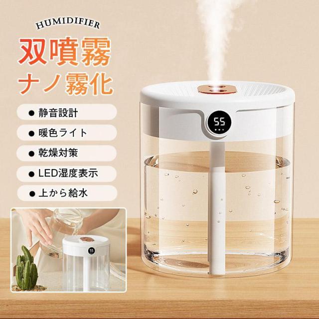加湿器 卓上 小型 空気清浄機 2L大容量 車用加湿器 秋冬乾燥対応 静音 オフィス 部屋 家庭用 花粉症対策 車載 省エネ 除菌 加湿機 センサ