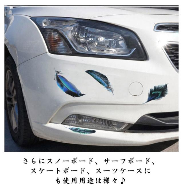 | 羽のデザインがとってもお洒落なカーステッカーです。 注目されるに間違いなし!リアルのようなフェザーで愛車をドレスアップ。 柄だけが残り、枠などがついていないスタイリッシュな仕上がりがワンポイント。 車の小さなキズ等をさりげなく隠すことができます。 車以外にも、バイク、自転車、ヘルメットに、トランクや冷蔵庫、雑貨、小物に! さらにスノーボード、サーフボード、スケートボード、スーツケースにも使用用途は様々? | |