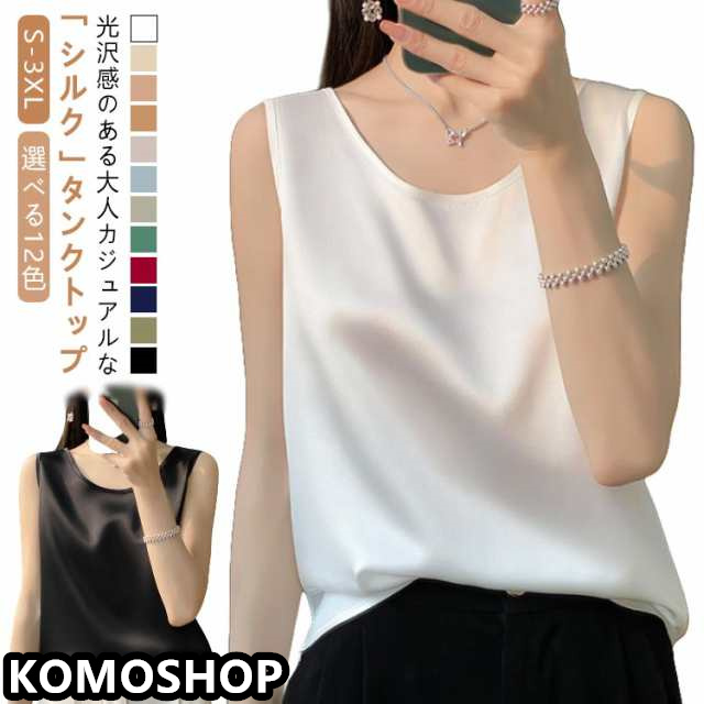 | 光沢感のある大人カジュアルな「シルク」タンクトップ 選べる12色 S-3XL ▼美しい落ち感のある生地で、しっとり健やか&天然シルク★ ▼滑らかな肌触りで、お肌にも心地よいやさしいシルクタンクトップに仕上がりました。 シルクは綿の1.5倍という優れた吸湿性を持っているため、 ◎蒸れることなく、お肌をサラサラの清潔な状態に保ちます。 ◎身につけることで素肌の乾燥を防ぎ、しっとりスベスベの肌へと導きます ◎吸湿?速乾に優れたシルクだから、汗をかいてもすぐにサラサラ、汗ばむ季節も朝まで快適です。 ●しっかり柔らかな光沢感のあるとろみ素材キレイめな生地感。 ●ゆったりシルエットでボディーラインをキレイに見せてくれる? ●女性の美しいラインを十分に引き出すうえ、デコルテラインもすっきりとキレイに見せてくれます。 ●天然の光沢が美しいシンプルなデザインでインナーとしてはもちろん色んな場面で活躍してくれる。 ●一枚持っておくと様々なコーデに合わせやすく、ノーマルなのに一味違う印象を醸し出せます! | |