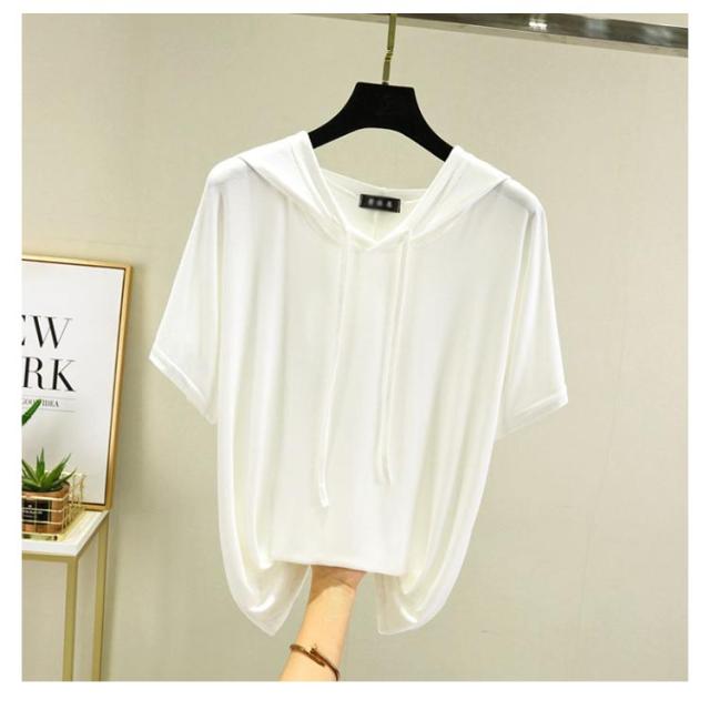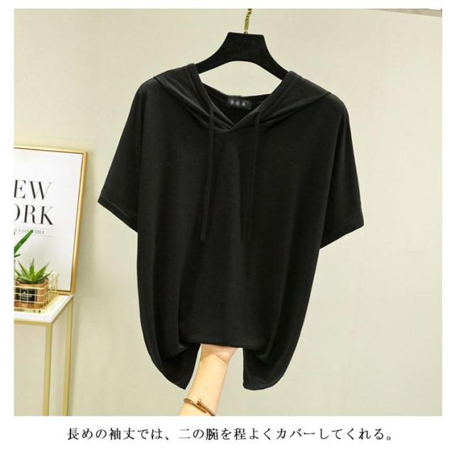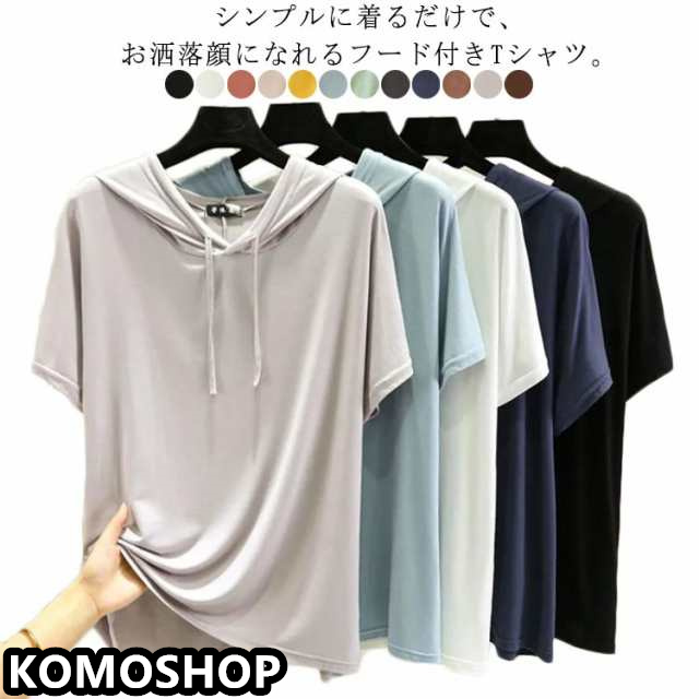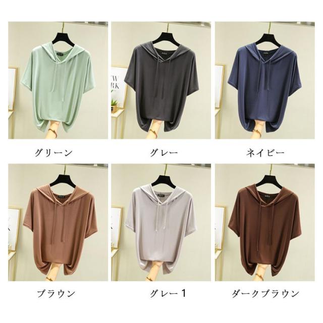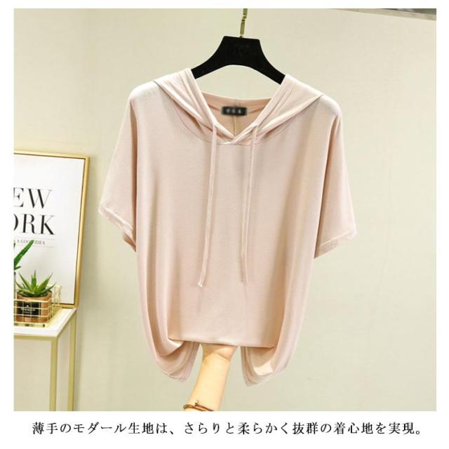 レディース パーカーtシャツ Tシャツ カットソー トップス 夏 ゆったり トップス 半袖 薄手 春 大きいサイズ フーディー Tシャツ 無地 シンプル フード付き インナー フェミニン 着痩せ モーダル