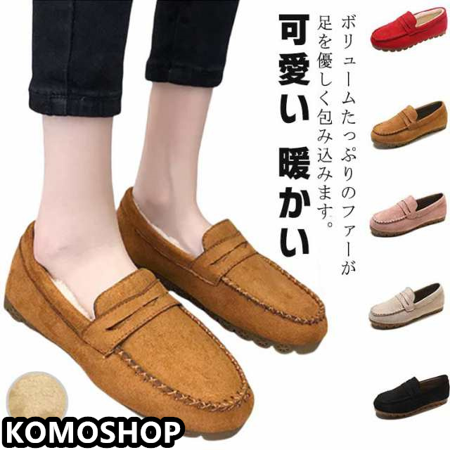 モカシン レディース ボア パンプス ローファー モカシン シューズ モカシン シューズ ローファー ムートン スエード調 もこもこ あったか スリッポン 秋 冬 大きいサイズ シューズ 美脚 通勤 大人 おしゃれ 秋冬 防寒