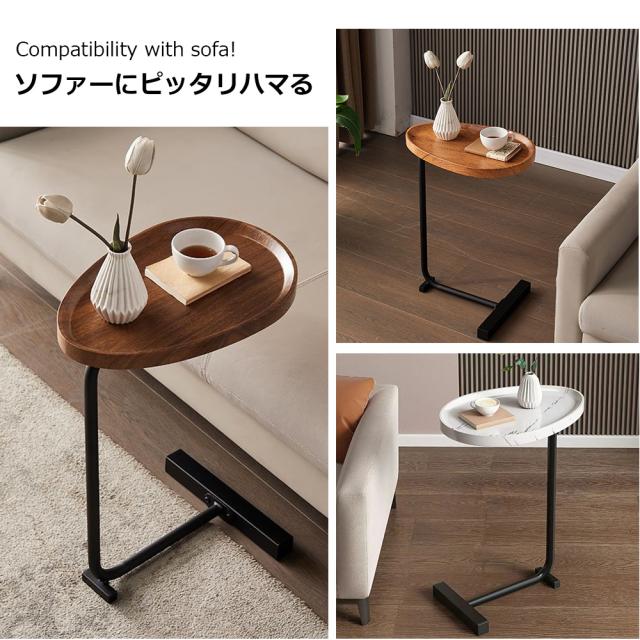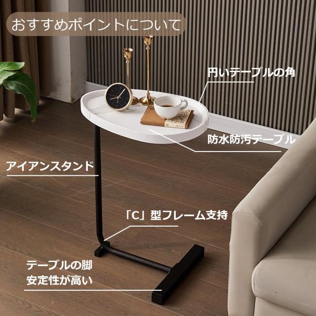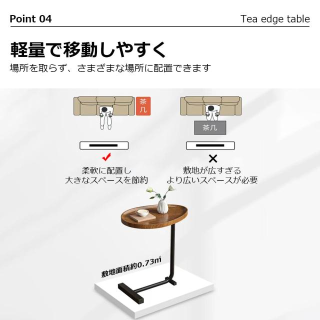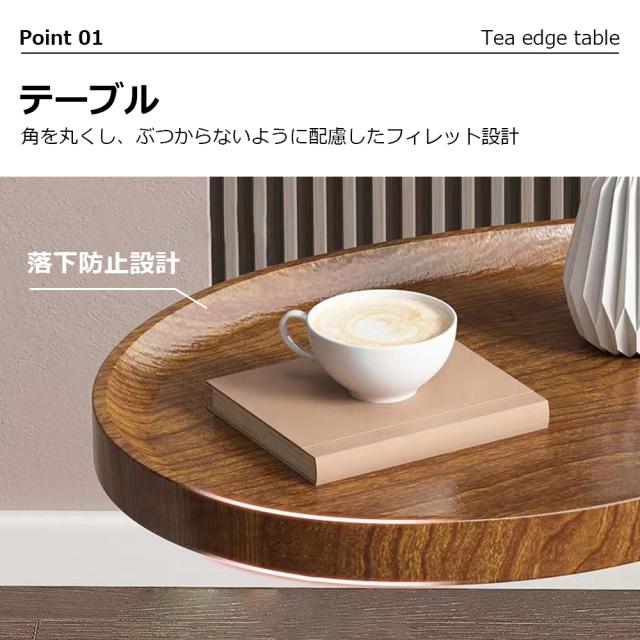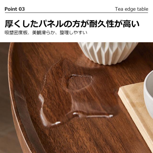 天板の角が丸く加工されているので、角をが痛くて使いにくいといった心配はありません。ソファに差し込めるから、座りながらのティータイムも快適に過ごせる。ソファやベッド、テーブルの傍らに。いつもそばに置いておきたい、様々なシーンで役立つサイドテーブル。