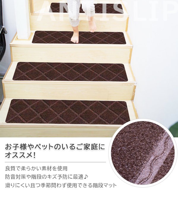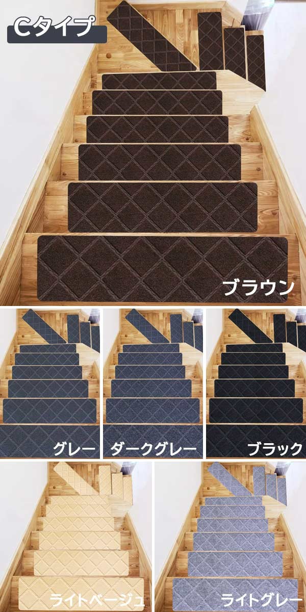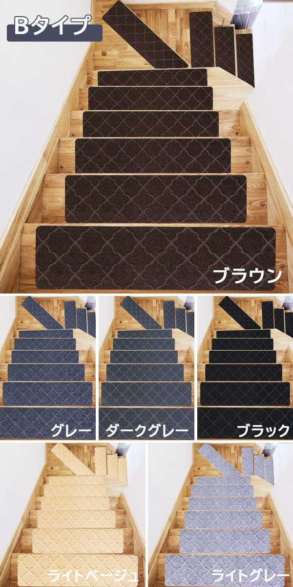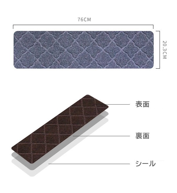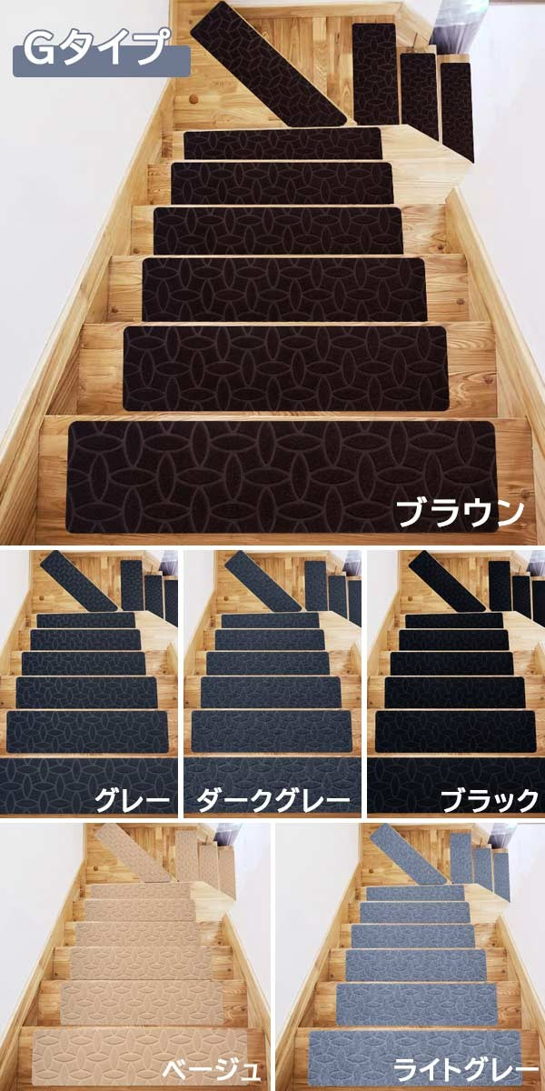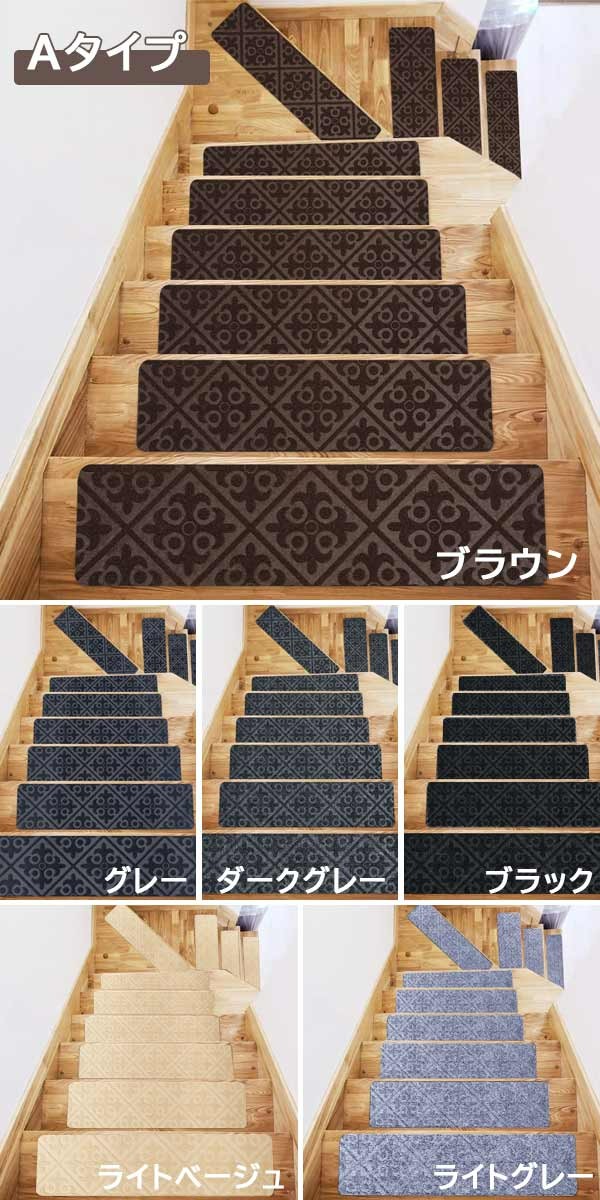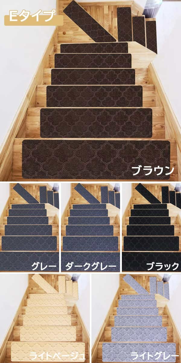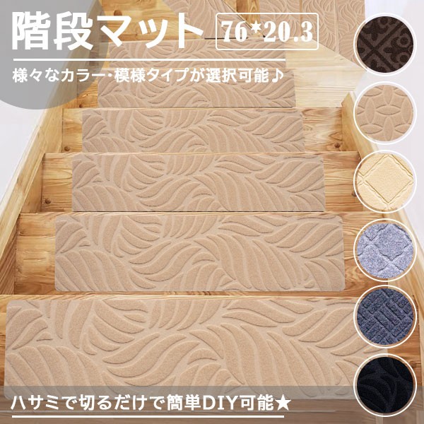 階段マット 吸着階段マット 矩形 北欧 7色展開 20.3cmx76cm 階段敷物 階段 滑り止めマット 防音 廊下敷き 階段マット エレガント シンプル リーフ柄 お手入れ簡単 洗濯可能 ベージュ ブラウン グレー ブラック