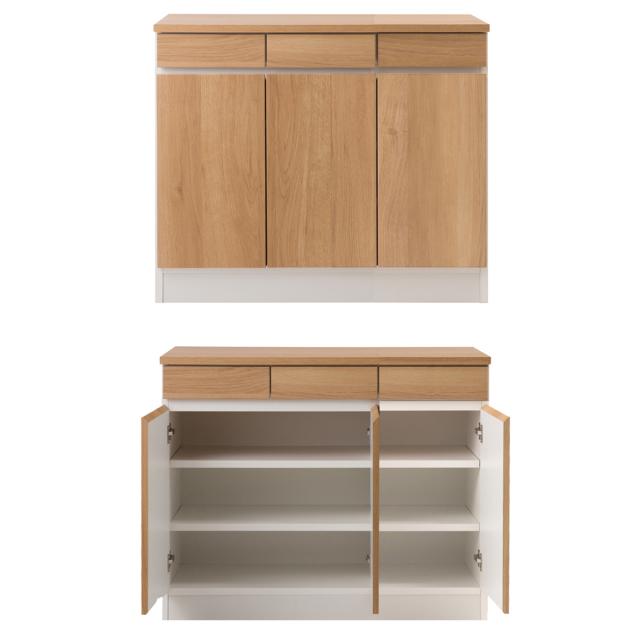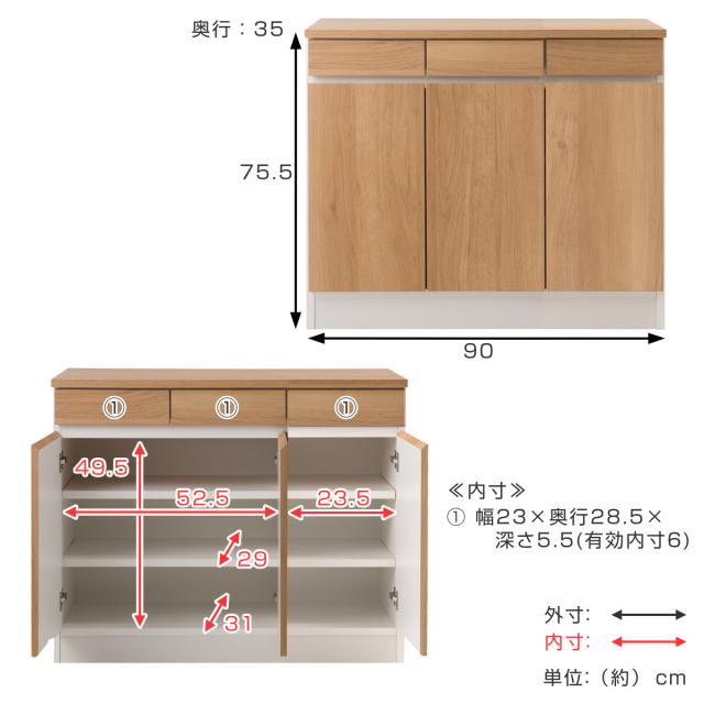 リビングボード 幅90cm カウンター下収納 GYMシリーズ 日本製 完成品 ( キャビネット ジムシリーズ 組み合わせ カウンター下 収納 薄型 奥行スリム 3杯 引き出し キッチン収納 可動棚 )