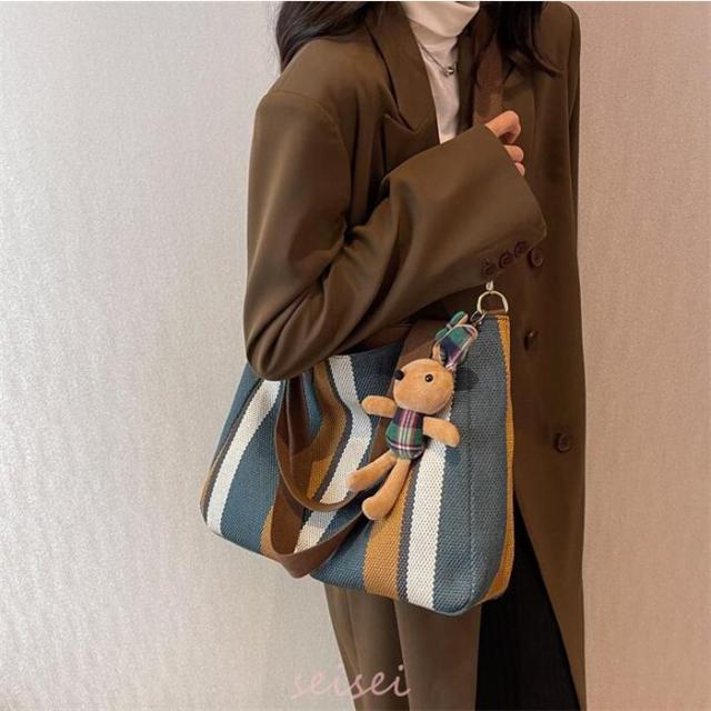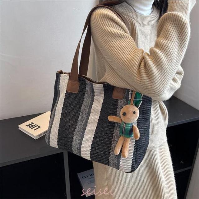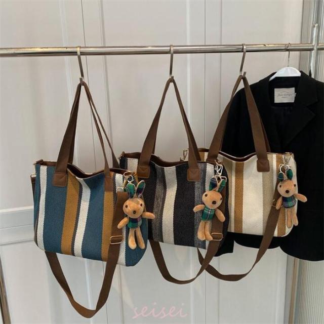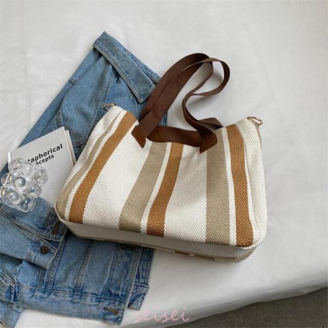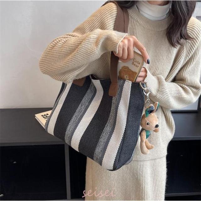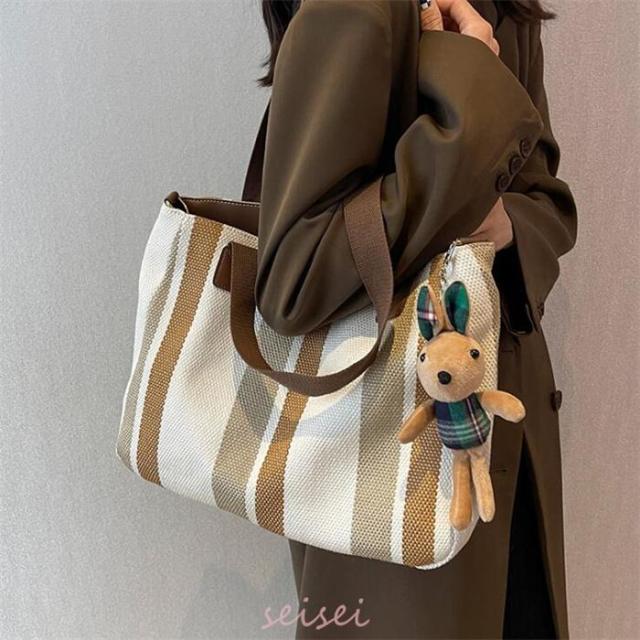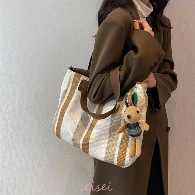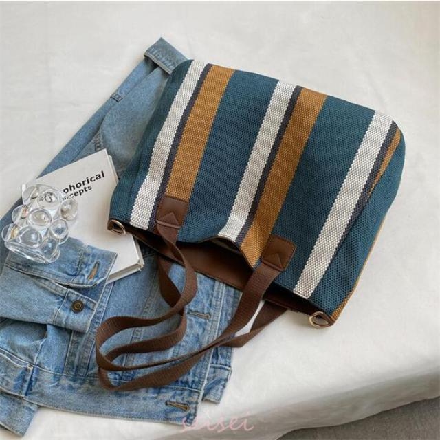 トートバッグ レディース ストライプ A4対応 3way キャンバス 帆布 肩掛け バッグ 手提げ 大容量 多収納 シンプル おしゃれ 通勤 通学 おしゃれ 軽量 送料無料